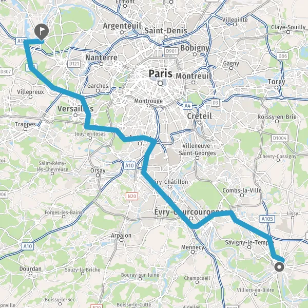 Prendre à droite et rejoindre N104 (La Francilienne). Continuer sur 6,8 kilomètres