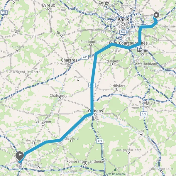 Prendre à droite et rejoindre A10. Continuer sur 34 kilomètres