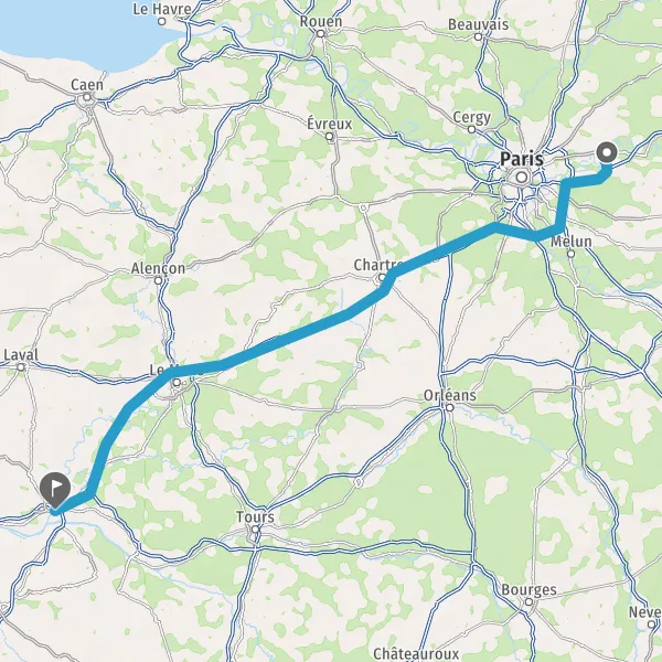 Prendre à droite et rejoindre A11 E50. Continuer sur 147 kilomètres