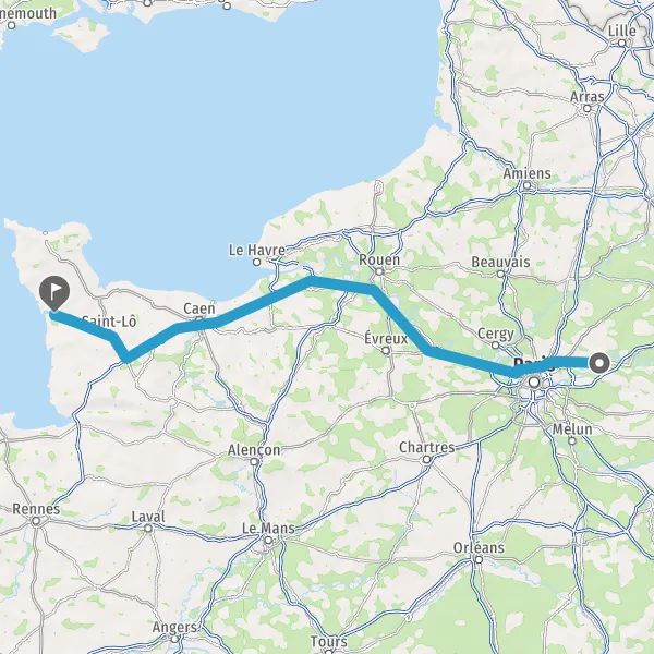Prendre à droite et rejoindre A84 E401. Continuer sur 45 kilomètres
