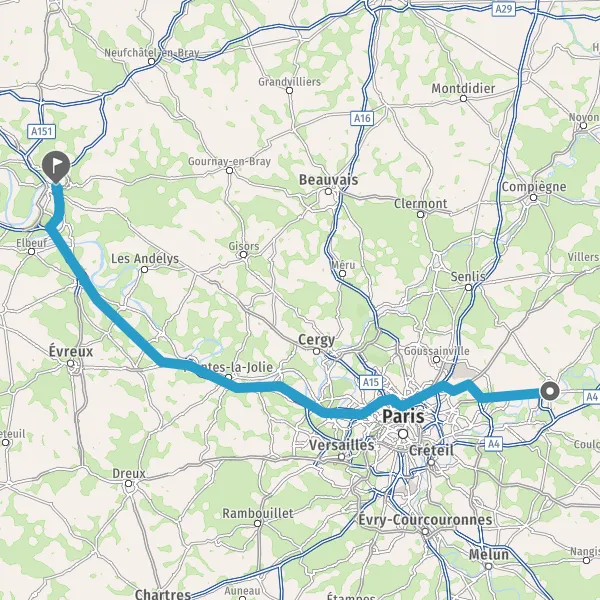 Payer 3,00 € (Péage Buchelay) Payer 4,50 € (Péage Heudebouville Barriere) 94 km