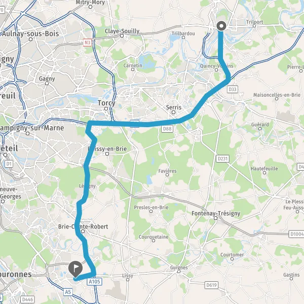 A4MelunMarne-la-ValléeCoulommiersCrécy-la-ChapelleQuincy-Voisins
