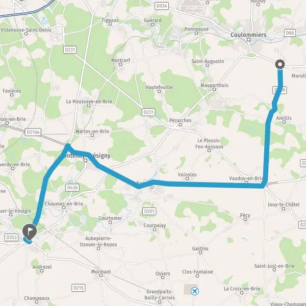 | Distance en voiture | 33,2 km à 43,6 km |