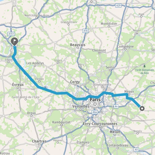 Prendre à gauche et rejoindre A13 E5. Continuer sur 69 kilomètres