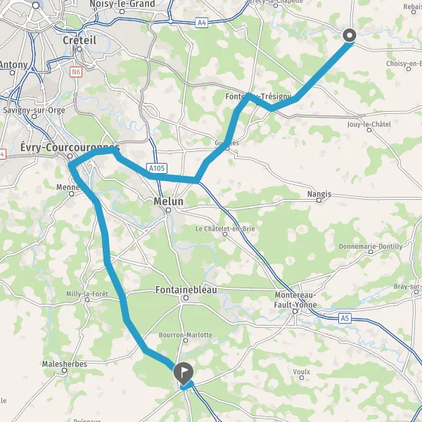 Prendre à droite et rejoindre N104 (La Francilienne). Continuer sur 9 kilomètres