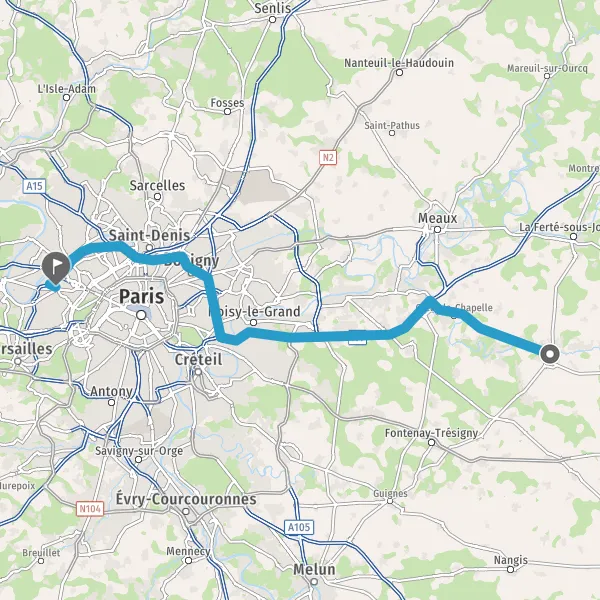 Prendre à droite et rejoindre A86. Continuer sur 25 kilomètres