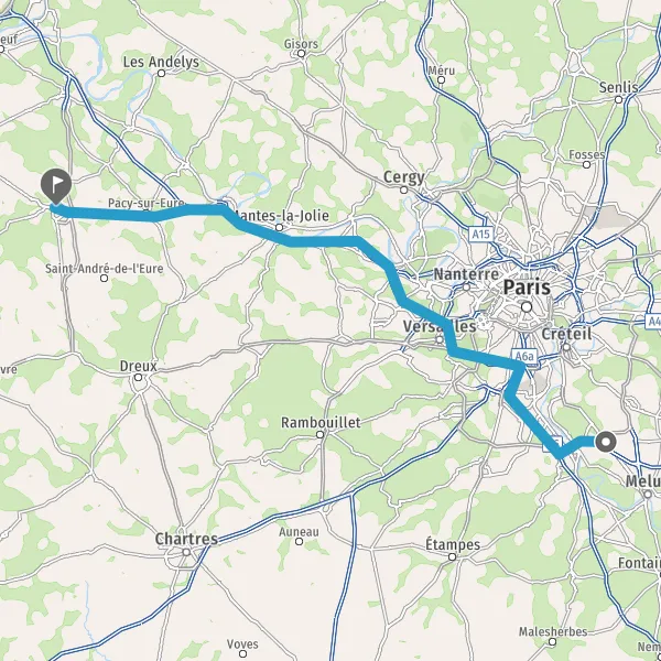 Prendre à droite et rejoindre A86. Continuer sur 6,6 kilomètres