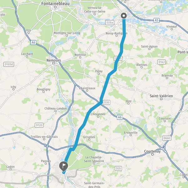 Au rond-point, prendre la 2ème sortie sur D219 (Route de Voulx) et continuer sur 7,6 kilomètres