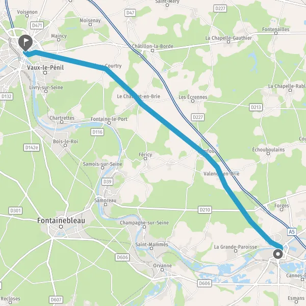 Avec le mode voiture, vous pouvez configurer vos options (type de véhicule, autoroute ou non, péage ou non, distance la plus courte), tout en ayant accès aux infos de circulation grâce à notre service d'info-trafic en temps réel. Ainsi faites des économies sur le coût ou la durée de votre voyage, en trouvant le trajet Montereau-Fault-Yonne Melun adapté à vos besoins.
