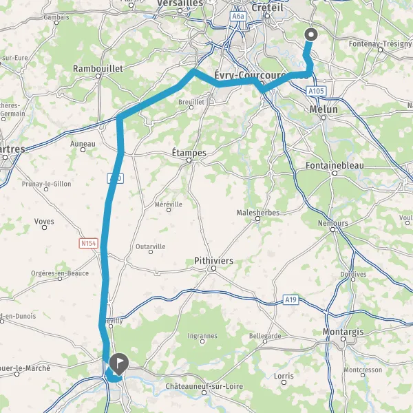 Prendre à gauche et rejoindre N104 (La Francilienne). Continuer sur 19 kilomètres