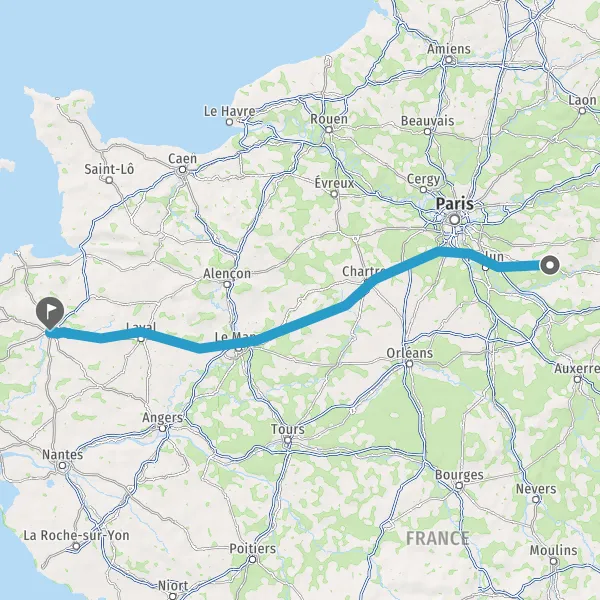 Prendre à droite et rejoindre A11 E50. Continuer sur 147 kilomètres