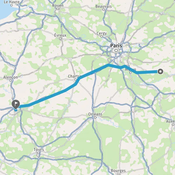 Prendre à droite et rejoindre A11 E50. Continuer sur 144 kilomètres