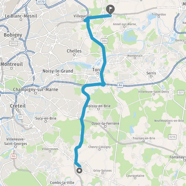 Prendre à droite et rejoindre N104 (La Francilienne). Continuer sur 14 kilomètres
