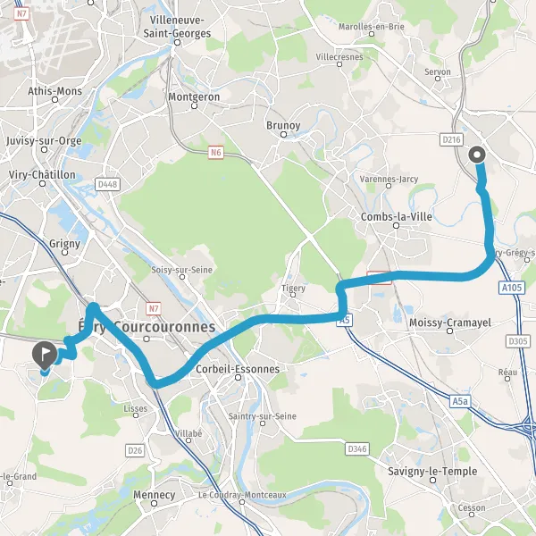 Prendre à droite et rejoindre N104 (La Francilienne). Continuer sur 6,2 kilomètres