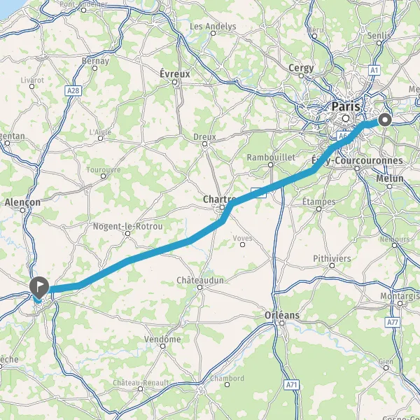 Prendre à droite et rejoindre A10. Continuer sur 34 kilomètres