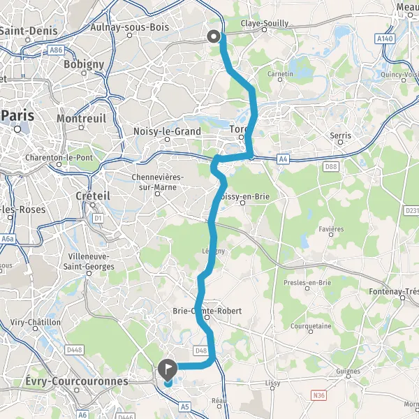 Prendre à droite et rejoindre N104 (La Francilienne). Continuer sur 5,1 kilomètres