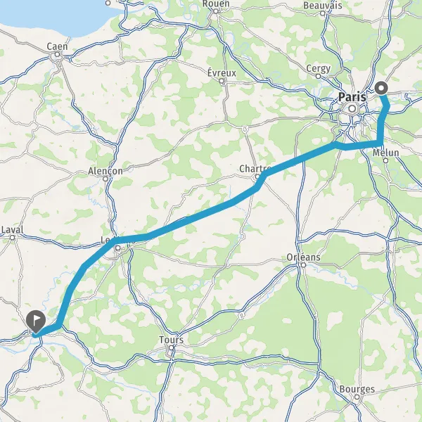 Prendre à droite et rejoindre A11 E50. Continuer sur 147 kilomètres