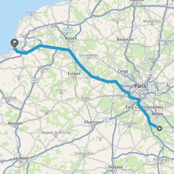 Prendre à gauche et rejoindre A13 E5. Continuer sur 103 kilomètres
