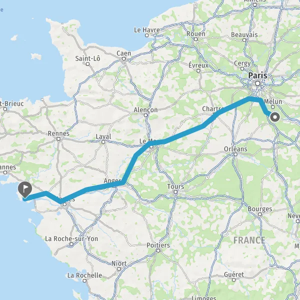Prendre à droite et rejoindre A11 E50. Continuer sur 147 kilomètres