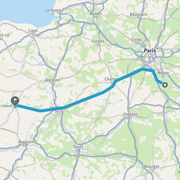 Prendre à droite et rejoindre A11 E50. Continuer sur 147 kilomètres