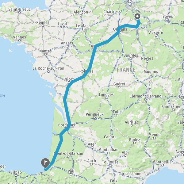 Prendre à droite et rejoindre A63. Continuer sur 183 kilomètres