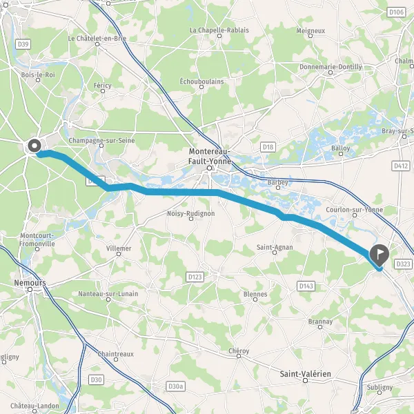 Tourner légèrement à droite sur D606 (Le Petit Villeblevin) et continuer sur 5,4 kilomètres