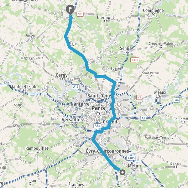 Prendre à droite et rejoindre N104 (La Francilienne). Continuer sur 8,8 kilomètres