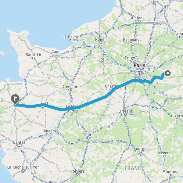 Prendre à droite et rejoindre A11 E50. Continuer sur 147 kilomètres