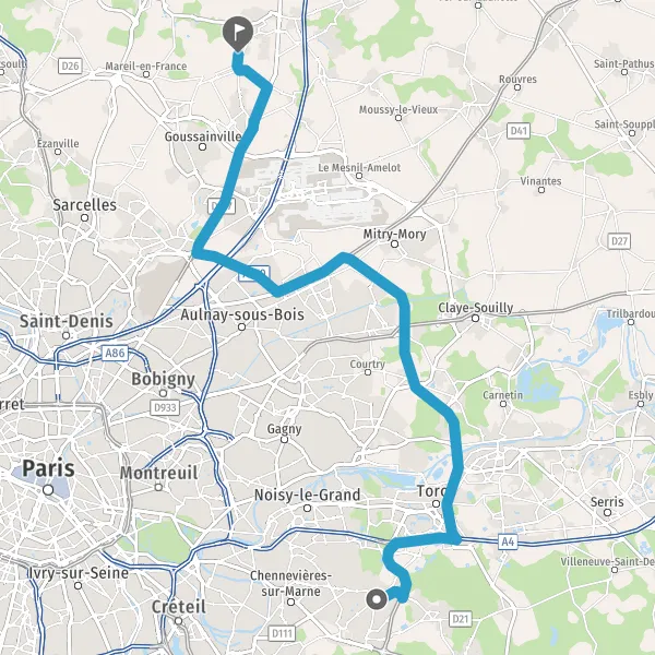 Prendre à droite et rejoindre N104 (La Francilienne). Continuer sur 2,7 kilomètres