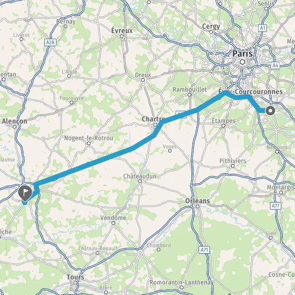 Prendre à droite et rejoindre A11 E50. Continuer sur 135 kilomètres