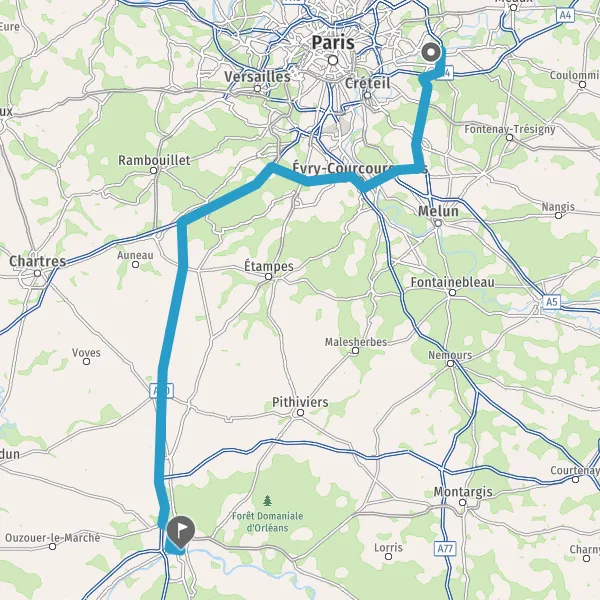 Prendre à droite et rejoindre A10. Continuer sur 34 kilomètres