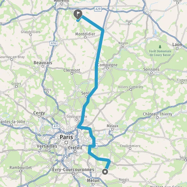 Prendre à droite et rejoindre N104 (La Francilienne). Continuer sur 6 kilomètres