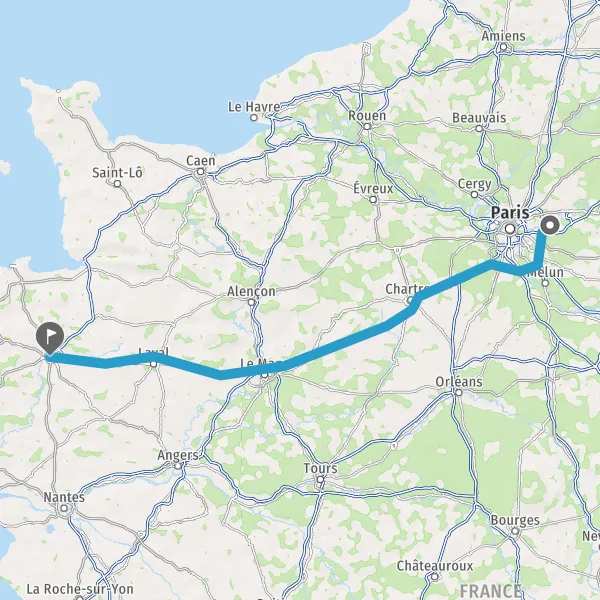 Prendre à droite et rejoindre A11 E50. Continuer sur 147 kilomètres