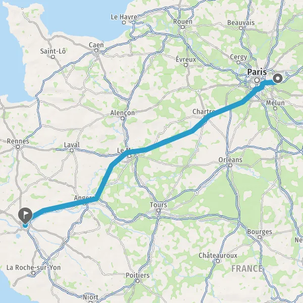 Prendre à droite et rejoindre A11 E50. Continuer sur 147 kilomètres