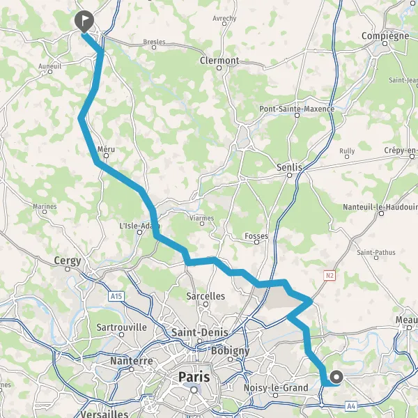Continuer N104 (La Francilienne) sur 4,5 kilomètres