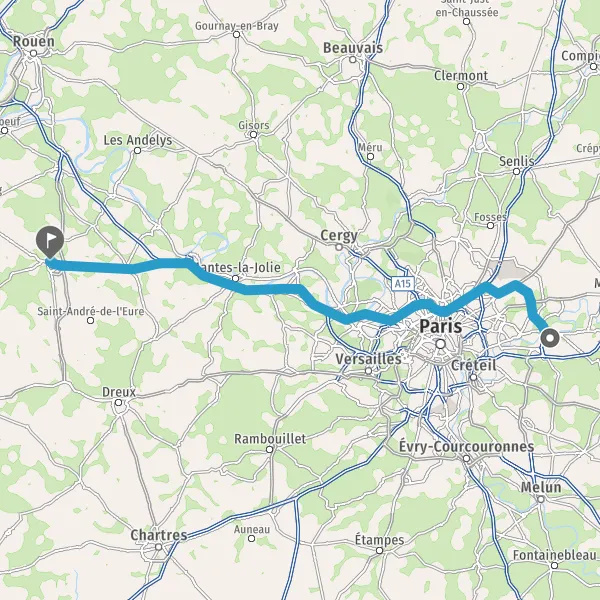 Prendre à gauche et rejoindre A13 E5. Continuer sur 20 kilomètres