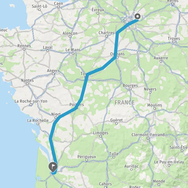 Continuer E5 (L'Aquitaine) sur 516 kilomètres