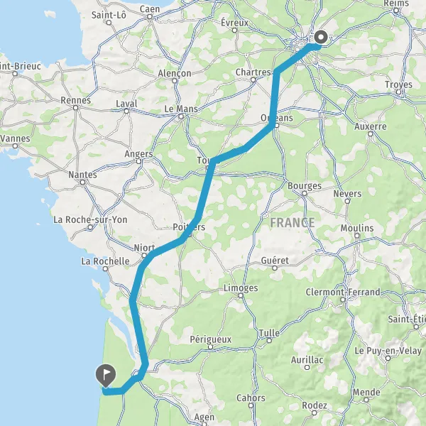 Continuer E5 (L'Aquitaine) sur 516 kilomètres