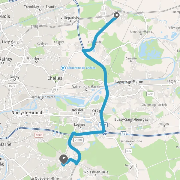 | Distance en voiture | 23,1 km à 25,2 km |