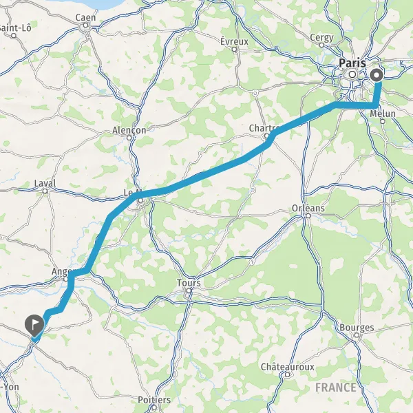 Prendre à droite et rejoindre A11 E50. Continuer sur 147 kilomètres