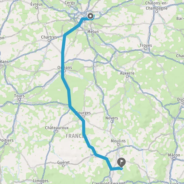 Prendre à droite et rejoindre A719. Continuer sur 22 kilomètres