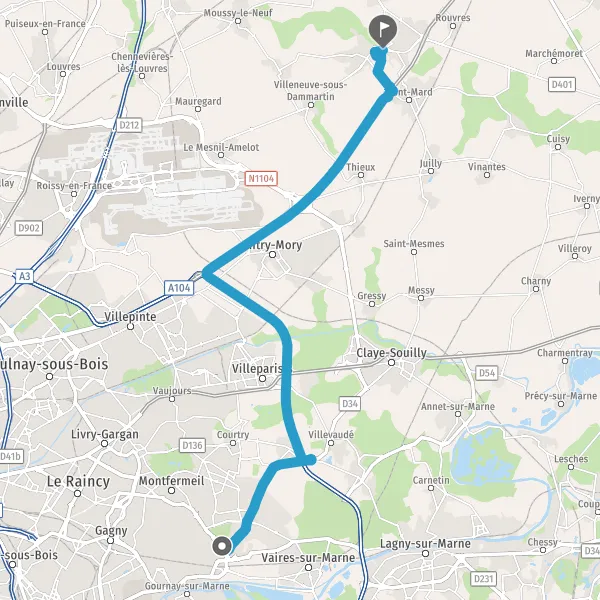 Au rond-point, prendre la 2ème sortie sur D34 (Avenue de Claye) et continuer sur 1,9 kilomètre