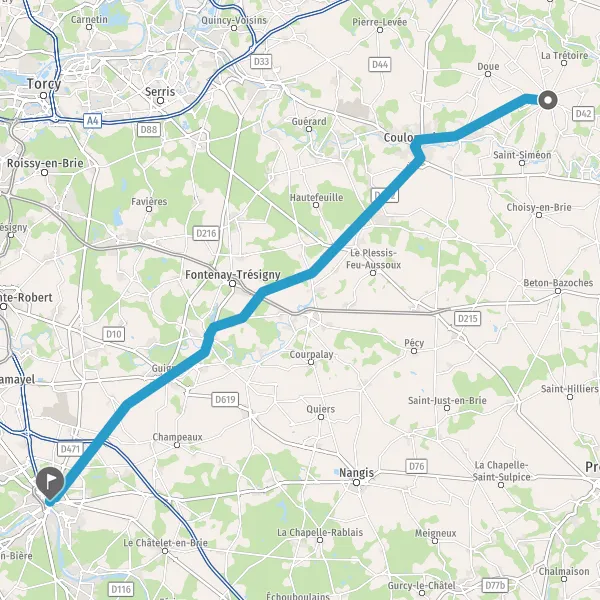 Au rond-point, prendre la 2ème sortie sur D402 (Route de Coulommiers) et continuer sur 3 kilomètres