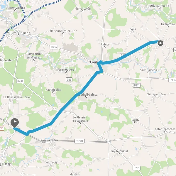 Au rond-point, prendre la 2ème sortie sur D402 (Route de Coulommiers) et continuer sur 3 kilomètres