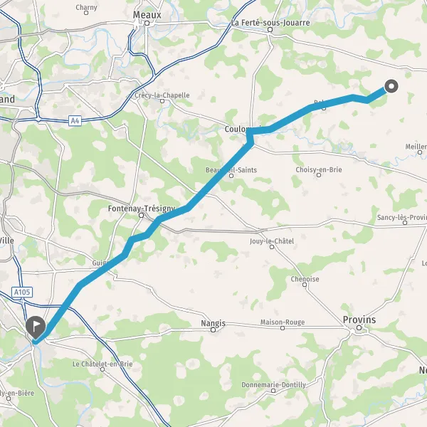 Au rond-point, prendre la 2ème sortie sur D402 (Route de Coulommiers) et continuer sur 3 kilomètres