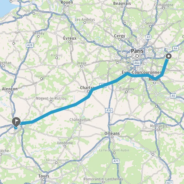 Prendre à droite et rejoindre A10. Continuer sur 34 kilomètres