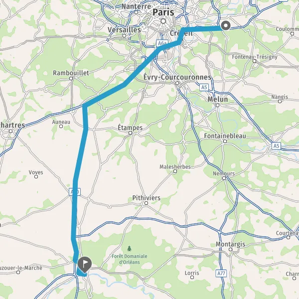 Prendre à droite et rejoindre A10. Continuer sur 34 kilomètres