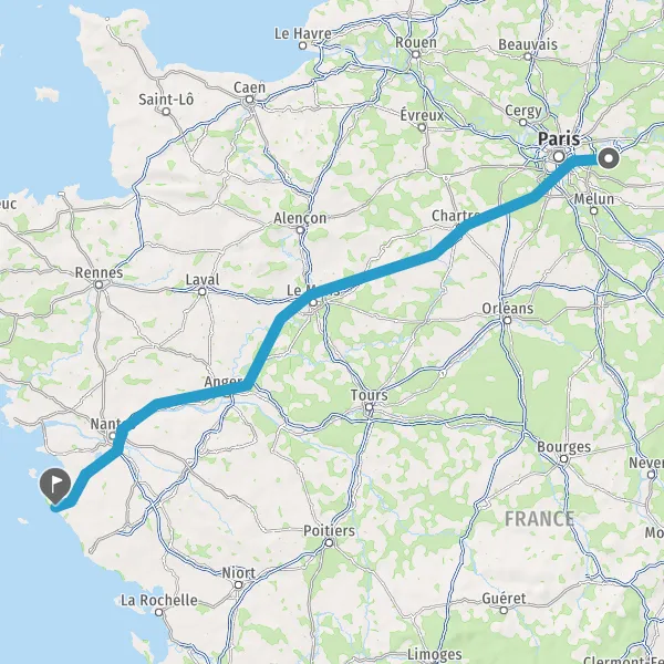 Continuer E501 (L'Océane) sur 165 kilomètres