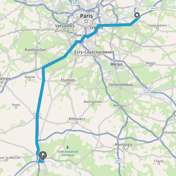 Prendre à droite et rejoindre A10. Continuer sur 34 kilomètres