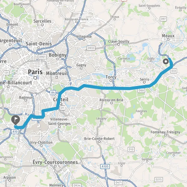 Prendre à droite et rejoindre A86. Continuer sur 4,2 kilomètres